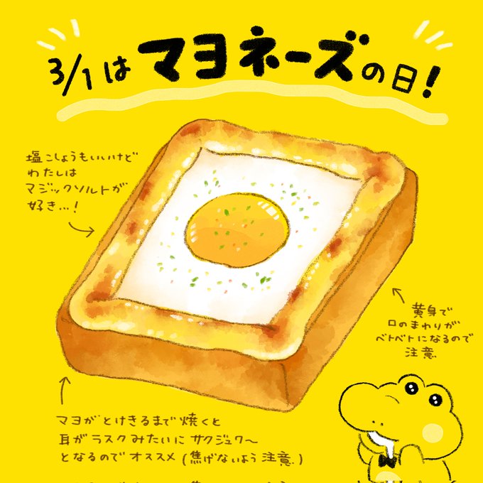 3月1日は #マヨネーズの日 らしいので私が一番好きなマヨ料理を描きました🍞🥚 ボタンひとつで焼けるし1枚で満腹になるので、忙しい日にぜひ!☺