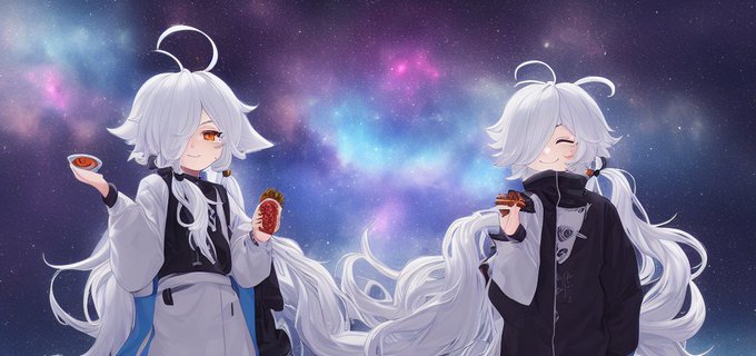 「Nebula(星雲)」の要素を全体に程よく混ぜると良い感じになったよAI絵。縦長画像でも映えるし、SFチックな謎衣装もカッコよす #WaifuDiffusion #StableDifusion