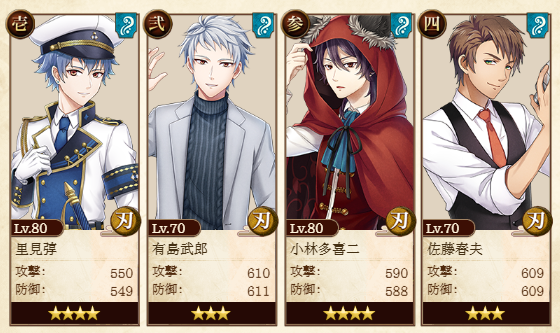 しんしちょ対応パ、☆の数しか見てなかったんだけど、今☆3水刃の服げっとしたしーでももうみんな☆3以上だしーってよく見たら、元が☆2だと☆4にしたところで重ねてない☆3に劣るんだな…後ろ3人はLVも開花もだいたい同じくらいだし。☆2服って………ねぇ……