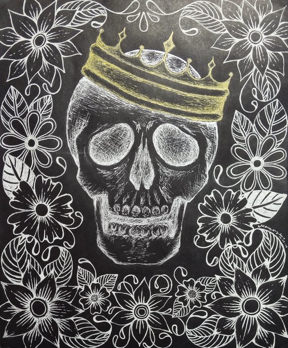 [Black paper, white pen and metalic pen 🖤💀]