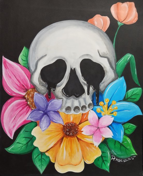 #Painting #TradArt #TraditionalArt #Acrylic #AcrylicPainting #Art #Artwork #skullpainting #flowers #ArtPH #RygelArt