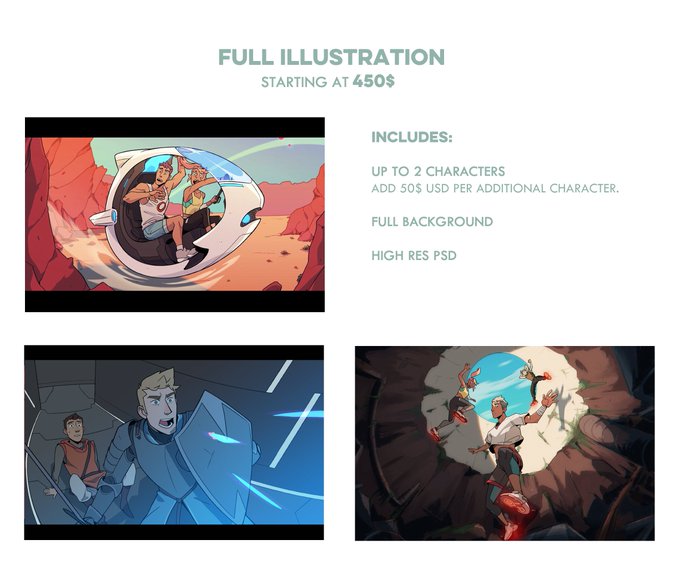 Hello! I have 2 commission slots available and I'm offering some things I've never offered before! Character sheets and illustrations would make for good material for your pitches (animation/comics/writing) so check it out!