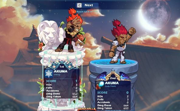 『ブロウルハラ』ストリートファイタースキンを使っていると、KO演出がストリートファイターIV風になるんだね。