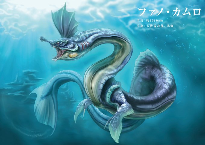 最北の地で出会ったのは、圧倒的な巨躯を誇る魚竜。 蒼く美しい体は、まるで海の化身かと錯覚させる。 #異界生態記
