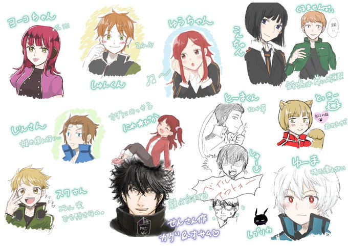 この前の絵チャで自分が描いたやつまとめた せんさんのカゲとオサムを添えて