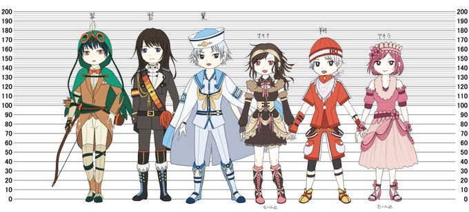 身長感見てみようと思って並べてみた。デフォルメでいまひとつ分かりにくいけどまあだいたいこんなん。