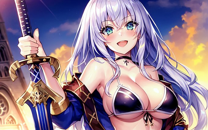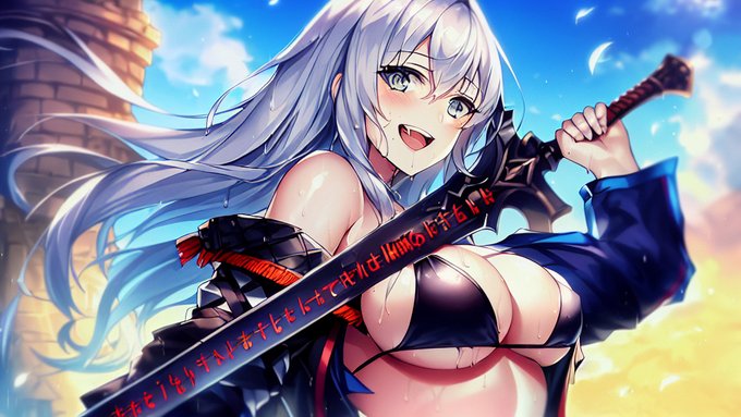 我ら、魔剣銀髪半脱ぎビキニ騎士団なり! 助太刀のため、この関所を押し通る! 命惜しくば退けい! #TrinArt