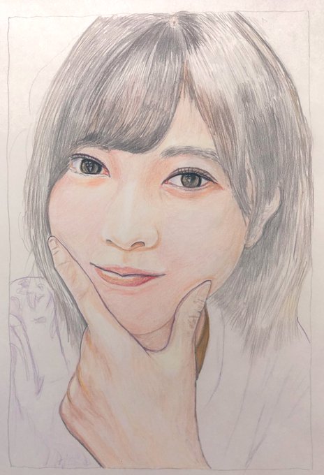 完成。乃木坂46の林瑠奈ちゃん。真っ向から勝負してみた。コクヨケント紙A4サイズで顔、髪、手の質感を頑張る。 肌は上手くいったと思うが、髪が粗くなった。まだまだです。 #色鉛筆画 #人物画 #林瑠奈 #乃木坂46