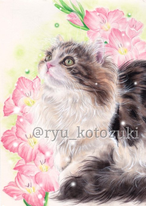 #絵描きさんと繋がりたい #猫好きさんと繋がりたい #花も好き