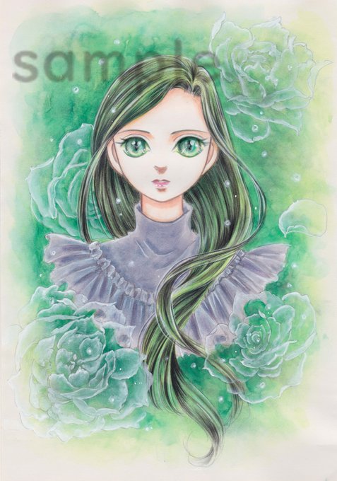 水彩、パステル色鉛筆を使用して描きました。光のホワイトだけデジタルで入れました。