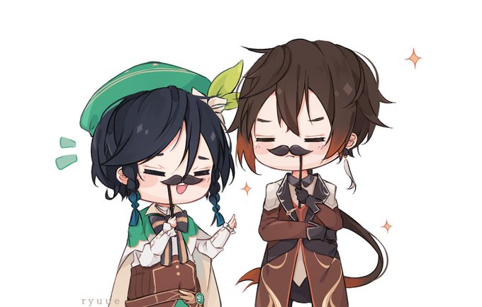childe and zhongli except zhongli is a cat that feeds on mora instead of meat