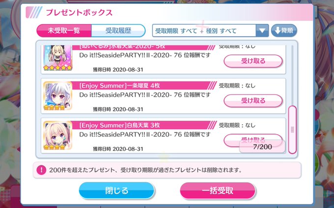 天井でしたね() ガチャで出なかったのは残念ですが未所持の天葉様を大量にゲット(HBDも含めて11枚)出来たので満足でございます。