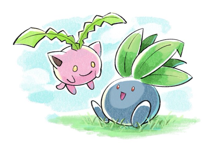 暖かくなってきたのでハネッコとナゾノクサ ポケモンの世界に行ったら、バトルは全然できないのでスケッチして過ごしたい #ポケモンイラスト