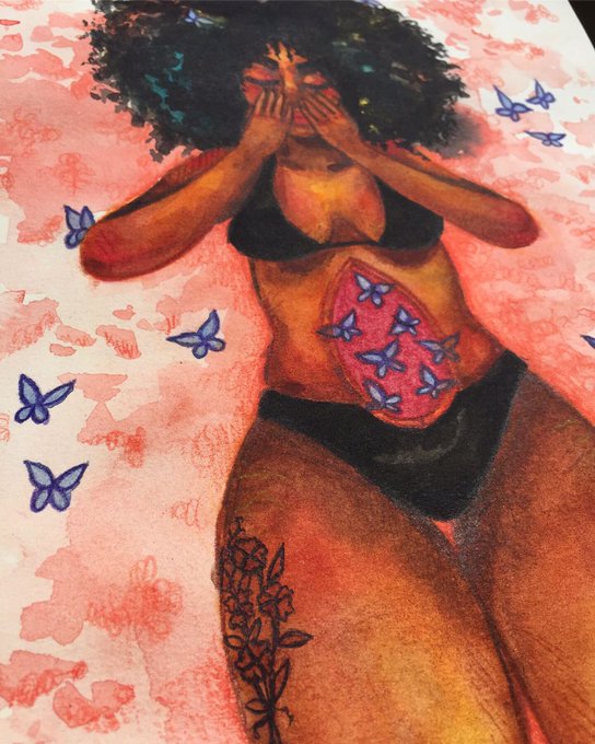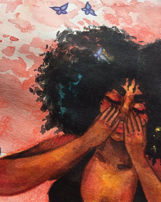 𝘠𝘰𝘶 𝘨𝘪𝘷𝘦 𝘮𝘦 𝘣𝘶𝘵𝘵𝘦𝘳𝘧𝘭𝘪𝘦𝘴... . . . Disponível #art #artistsontwitter #butterfly #blackwoman #watercolorpainting