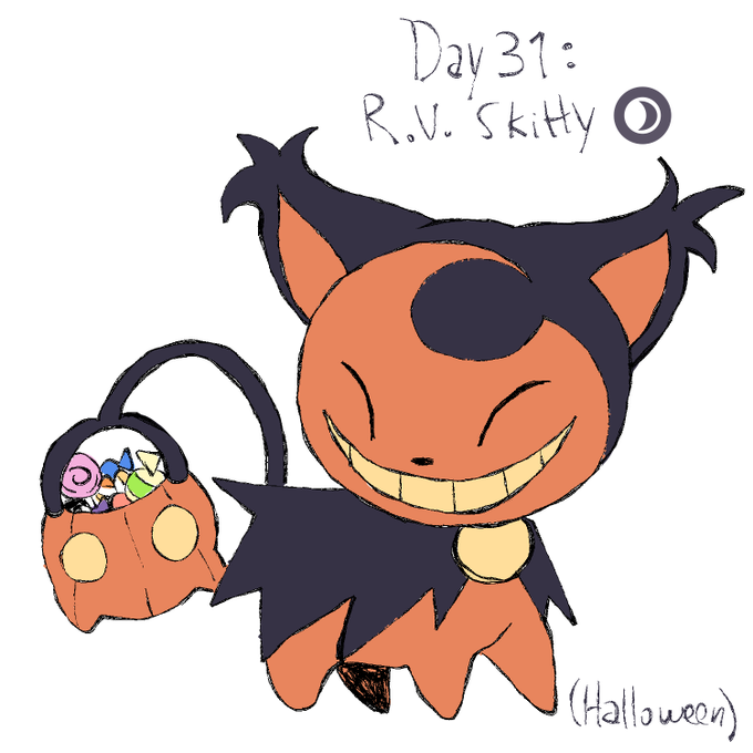 Day 31: Regional variant skitty! To celebrate Halloween, here is a spooky black trick-or-treater cat!