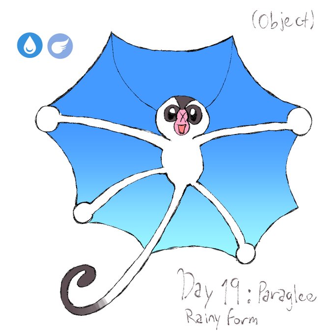 Day 19: Paraglee. I made an umbrella sugar glider pokemon. Like cherrim, it has a special form depending on the weather (it opens when raining)