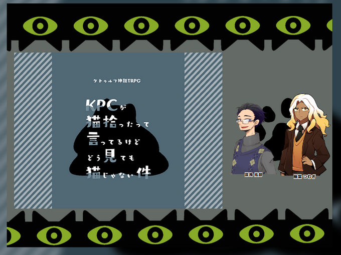 CoC「KPCが猫拾ったって言ってるけどどう見ても猫じゃない件」 KP/すゐち PL/sitohさん 今日は影よ!組で猫と戯れます! おっさん二人でがんばるぞーーーー! いってきまーす!