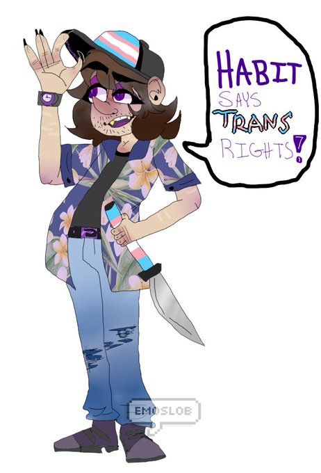 Hello everyone ! and happy pride month !! I decided to draw my favorite entity , HABIT from EverymanHYBRID ! So here he is saying bi , trans, and gay rights !!! #emh #everymanhybrid #habitemh #birights #transrights #gayrights #PrideMonth