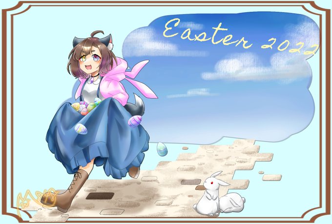 こっちでもツイートしちゃお!のイースターイラスト!🌼🐰🐾🐣🌷