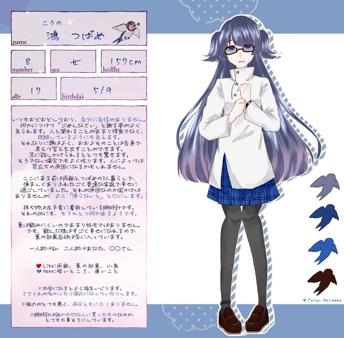 💉08:鴻つばめ ( @Tuyu3_ ) 「えっと、こ、鴻つばめって言います… よ、よろしくお願いします…」 #おはようシンカプセラ