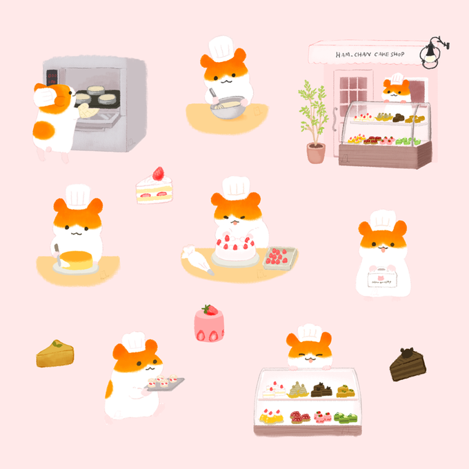 ケーキ屋さんとクレープやさんとパン屋さんのハムちゃん🐹