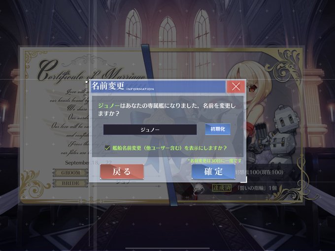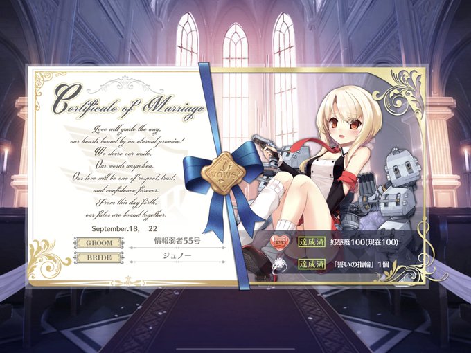 本日ジュノーとケッコンしました