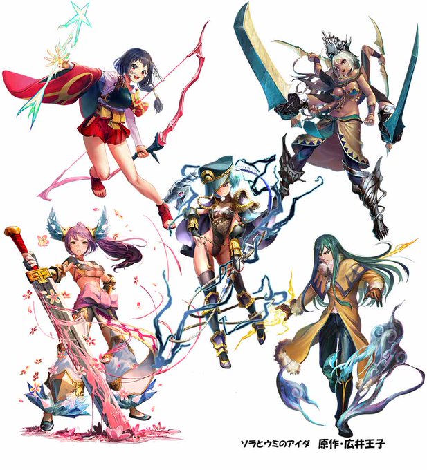 広井王子先生原作の「ソラとウミのアイダ」 @soraumi_app にて、守護神たちを描かせていただいています。 磐筒女神、高照姫神、黒雷神、八幡神、伏雷神、阿加流売神、ウラヌスなどです~!よろしくお願いします! #ソラウミ