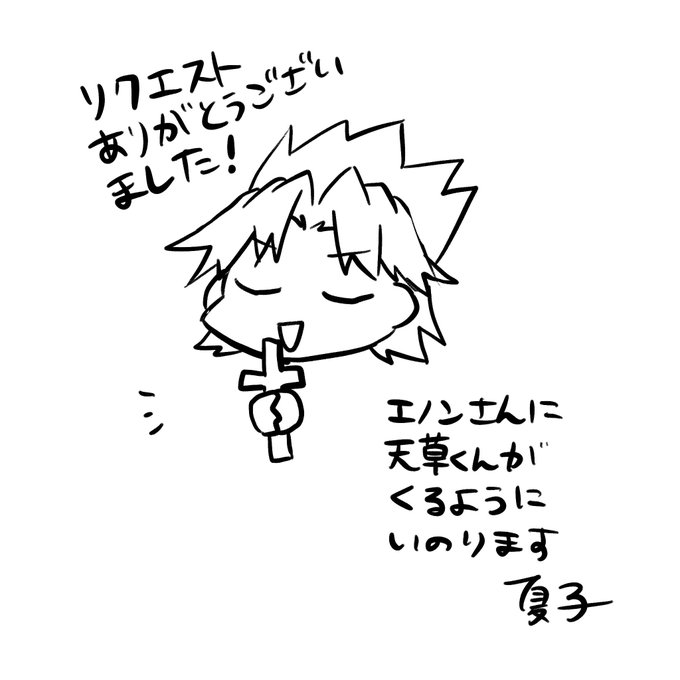 エノンさん(@enon_cooda )にアイコンを描かせていただきました! 初めて人のアイコンを描かせていただいたのでドキドキしてます😎 エノンさんありがとうございました! ※ポニテ天草くんで2臨衣装なのは仕様です
