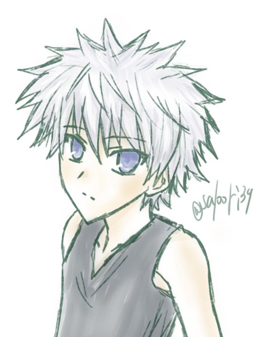#ホワイトデーは銀髪白髪を愛でる日 間に合わせで描いた ハンターハンターのキルア。