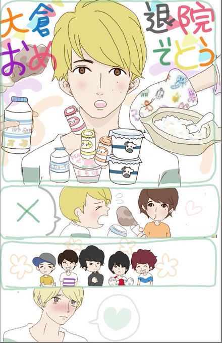 大倉くん退院おめでとう♡♡(*^^*)♡♡美味しいものはまだ食べれないと思いますが、お身体に気をつけてください!素敵な仲間やeighterが支えているよーーーーー