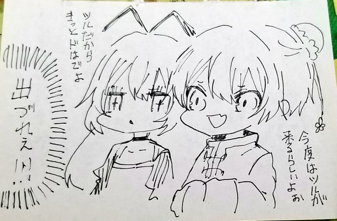 配布前の落書きです 四枚目はお鶴の容姿がまだ決まってなかった時のブツです