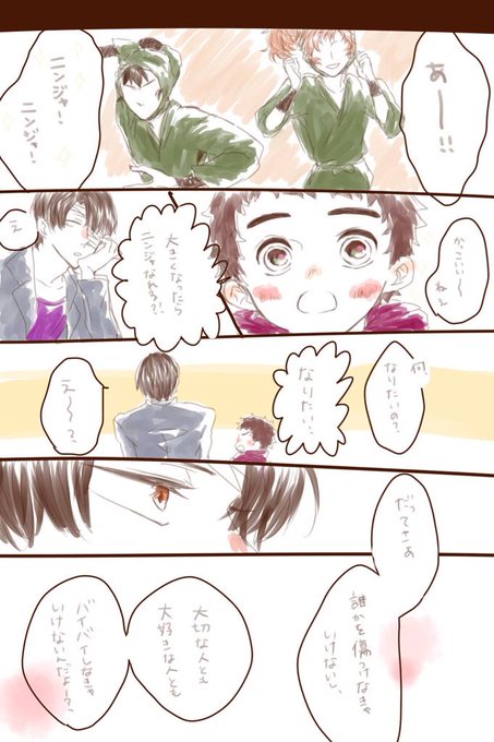 サンシャインで見かけた父子があまりに可愛かったので雑渡さんと尊奈門で描いてしまいました……苦手な方ご注意ください。絵も字も汚いですすみません…。