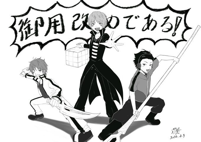 昨日のBLEACHで斑目一角が出てきたので一角のツキツキの舞が見たくて描いたらくがき(弓親もいるよ!)