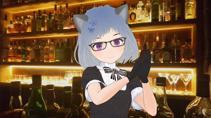すずちいさんに描いて頂いた新衣装の鯖に、フリー素材の背景を混ぜてみました🐟🦋✨