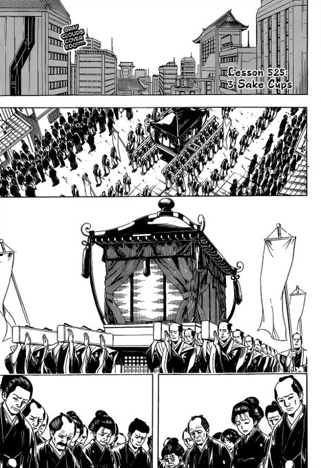 Gintoki becomes aware of how huge a burden his sensei had been carrying. Much bigger than he thought. He’s asked to aid his fellow disciples but Gin has no idea what to do for them. Instead Kagura becomes the driving force of the arc. Immediately running to her first family’s aid