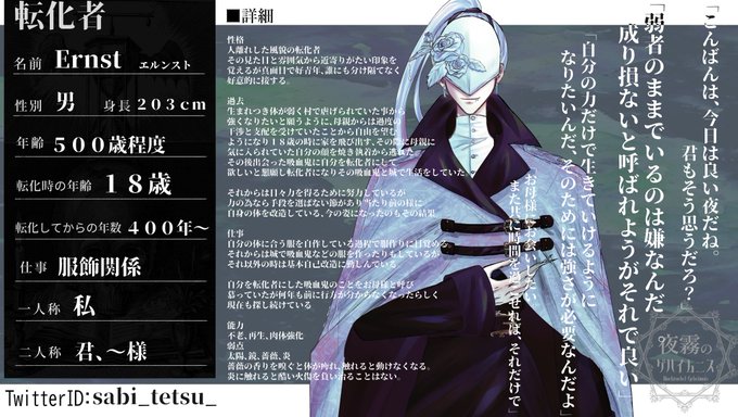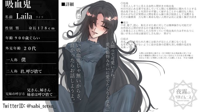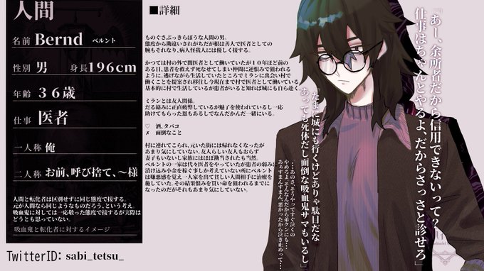 (@yorunisu)タグに不備がありましたので再投稿です・・・🙇♀️こちらの素敵な企画に参加させて頂きます!見た目は吸血鬼っぽくない性格最悪男です!事前で転化させたお子様との関係を頂いており同居していますがそれ以外の関係は真っ白です~✨よろしくお願いします!!
