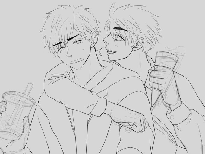 やっっっっっと!!終わったようぅぅ!!!!!久しぶり過ぎて線画から約4日かかったよ〜💦 服のセンスが無さすぎて侑桜餅みたくなってしまった… でもとりあえず満足です!