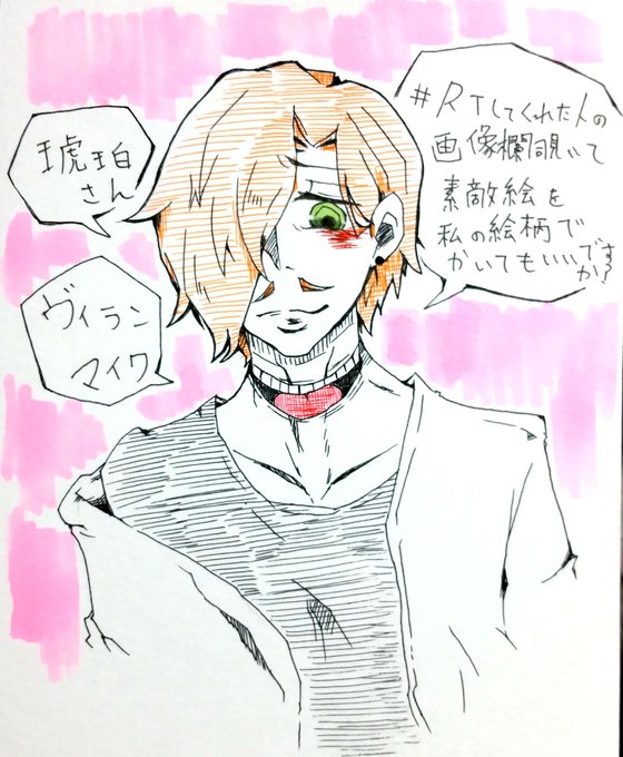 #RTしてくれた人の画像欄覗いて素敵絵を私の絵柄で書いてもいいですか 琥珀さん(@koha_330)の画像お借りいたしました✨タグ反応ありがとうございます😌💕短髪ヴィランマイクちゃん!喉元の口が好きです💕💕