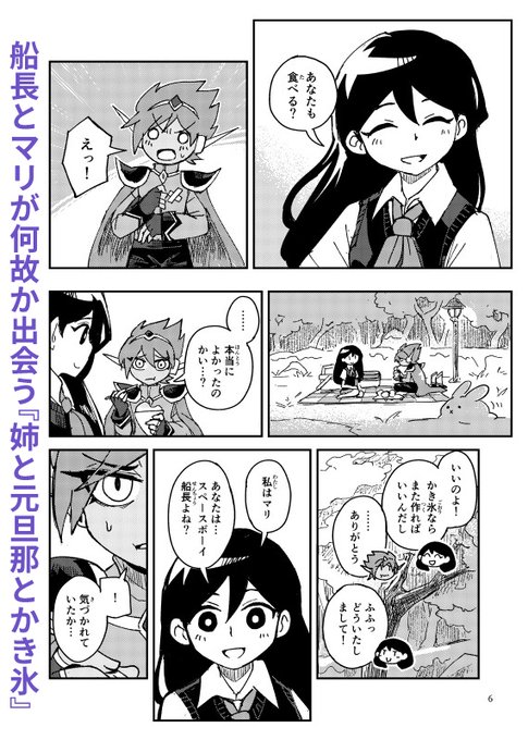 pixivで上げている船長漫画の再録中心です。収録作品は『姉と元旦那とかき氷』『鯨の中より、草々』(ほんのりスペスイ)『ポスターの思い出』(わりとサニオブ)と、描き下ろしの1編です。(下に続きます)