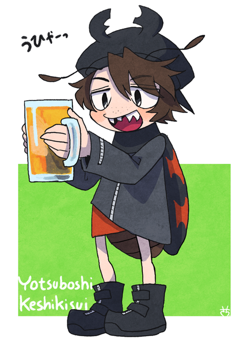 ごぶたま◆思いついたので描くシリーズ・アオバアリガタハネカクシ。初稿は顔に火傷の跡があってそれを隠しているというのだったのですが「それもどうなの」と思い火傷跡をオミットしたら「俺の中には灼熱の毒が流れている」みたいなこと言いだしそうな子になりました。