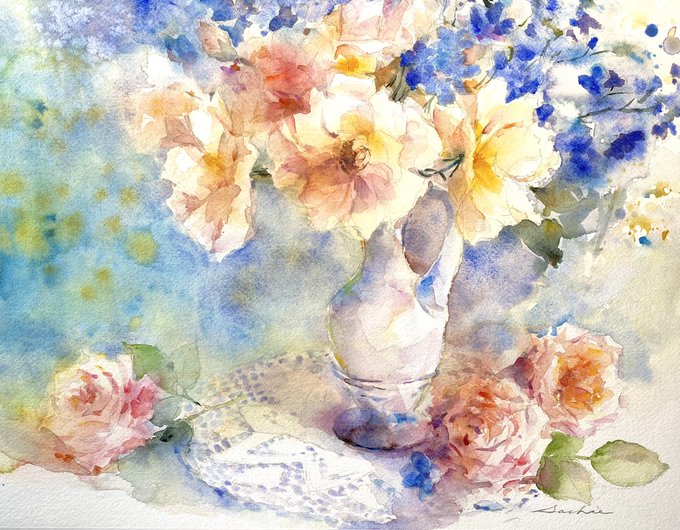 初秋の静けさ…とはいえ、まだまだ暑い日が続いていますね。 #水彩画 #透明水彩 #花の絵 #絵描きさんと繋がりたい