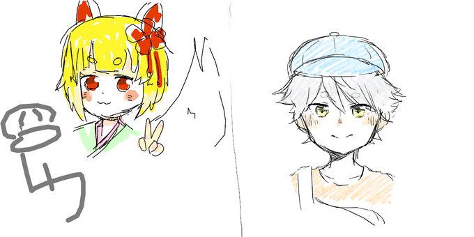 レフくんとのコラボ配信ありがとうございました! 1枚目から『推しVtuber』『Vかくかぞく兄妹』『5分でお互いを描く』でした!左がレフくんで右がサコ!