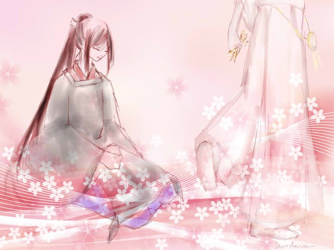 #三日月宗近版お絵描き60分一本勝負 お題【屏風/桃の花】*30分ほどフライングで…