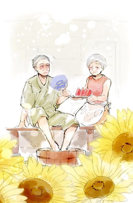 不器用なおばあちゃんと、おじいちゃんの7月の縁側🌻 #夫婦 #縁側 #夏