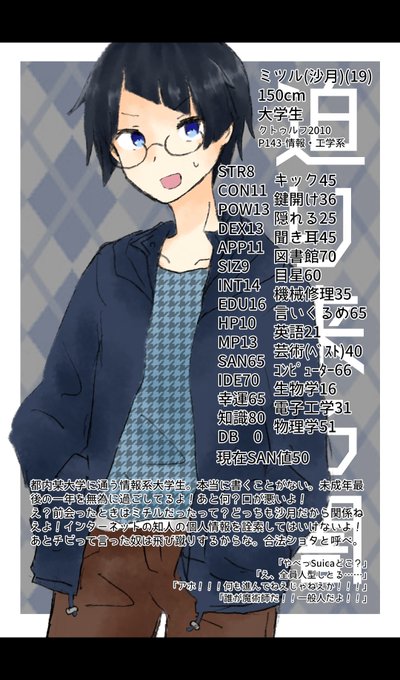@GU_2442 なんか意外とこういうのが見たい 探偵探索者 藤代といいます 自惚れどや顔系で年下の女の子をライバル視してる