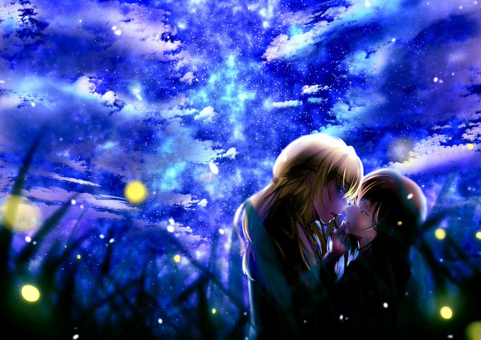 【篠唯】「年に一度、今日だけは」 七夕用に描きました~✨ 背景ガッツリ描くのムズすぎて色々反省点はあるけど。。。 最近篠森先生好きだぁ!個人的には年に一度といわず手出していいと思うよ!! #スタオケ #スタオケアート部