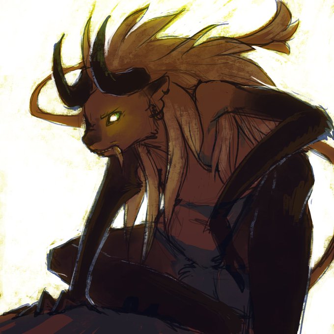 @TeMaskedMallard In the chance you don't have enough babes to attempt to draw, I give you this lumpy trash shape-shifting lizard named Atra! She's a dragon, but shapeshifts into this "imp"ish form that is very thicc with stick arms. She has big hair and is very lazy, art by @LayDoubtToRest 💖