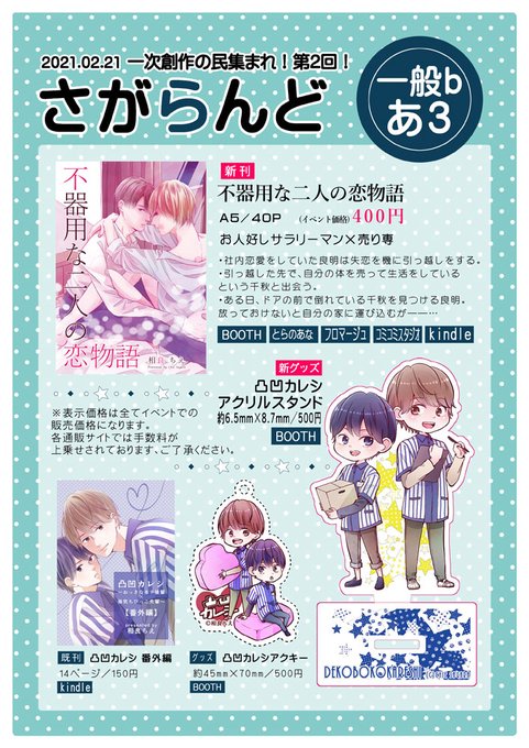 新刊は創作BL漫画、凸凹カレシのグッズも作りました😊