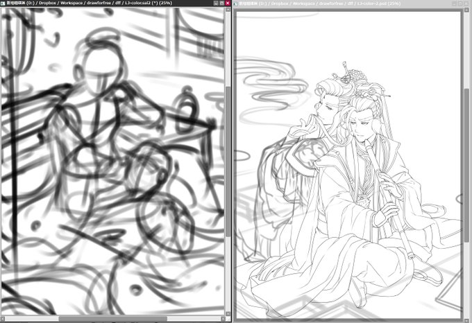 畫到一半改了角色配置,其實本來毛是躺在龍哥膝蓋上的(但後來覺得這姿勢最好是能吹奏樂器) #StartFinish
