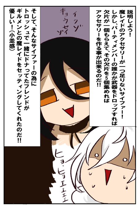 昨日の魔レイド アクセサリーも作れてアインの可能性もさらに広がって内心凄い事になってたけど、ちゃんとお礼は言ったんだ… あと多分きっとメイビィそろそろアインに怒られそう(^ω^)